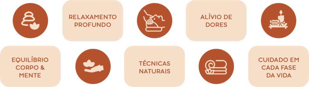 (Gestantes, Noivas, Idosos, Infantil/Kids, Shantala Bebês)